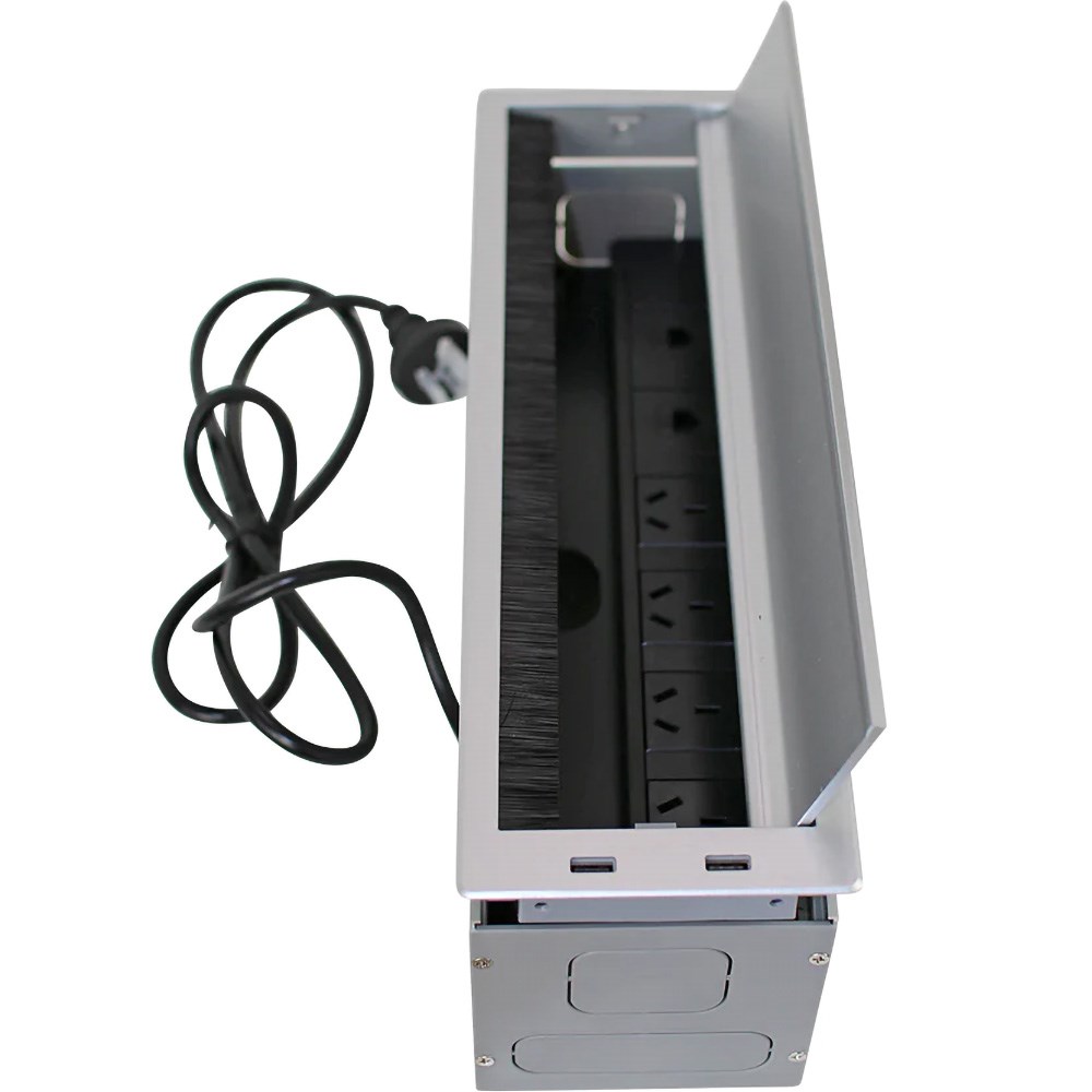 Sylex In Desk Power Box 4 GPO 2 USB 2 Data Silver