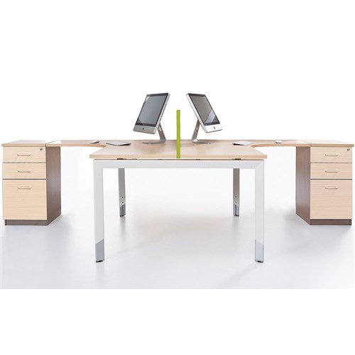 • Convert this collaborative workspace into two private work desks with the addition of divider screens.