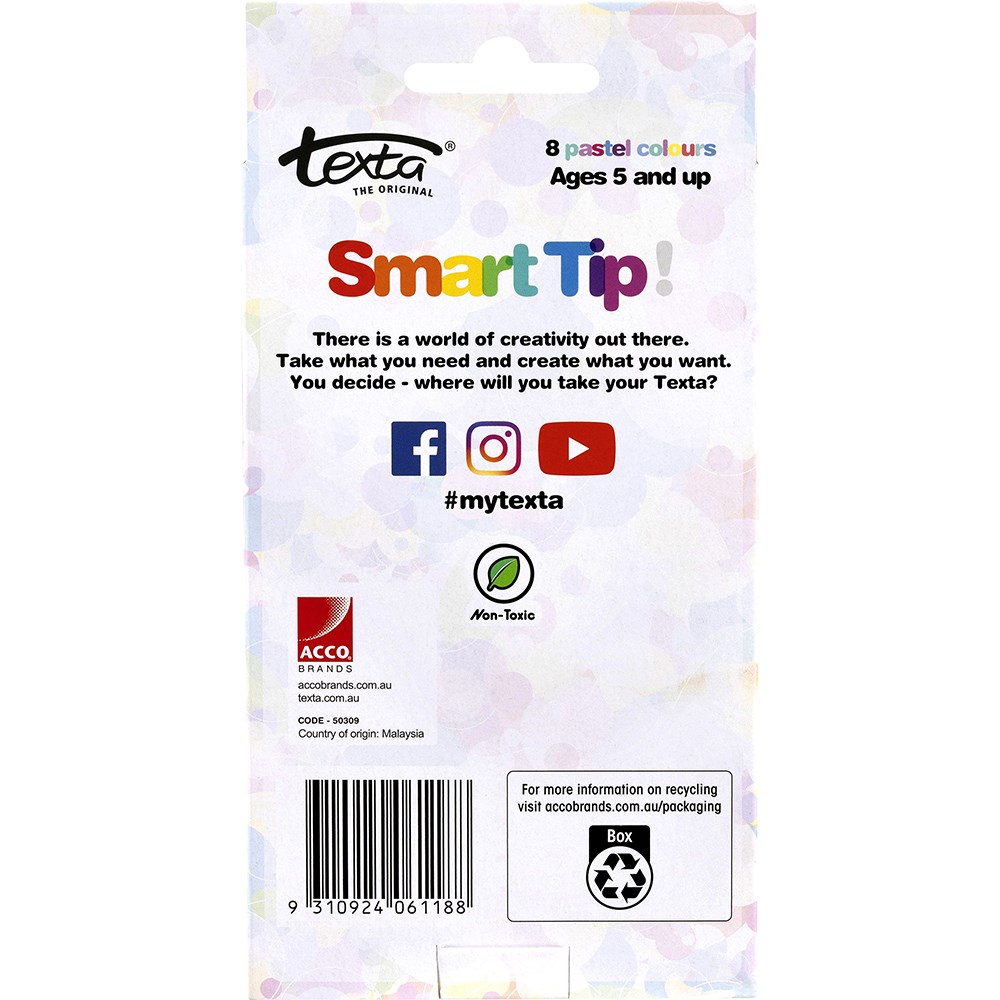 Texta Smart Tip Colouring In Markers Pastel Assorted Pack Of 8